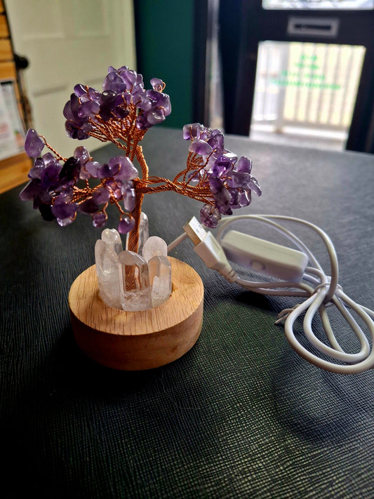 LED Gemstone Tree Lamp – USB Powered with Wooden Base 3.5"H