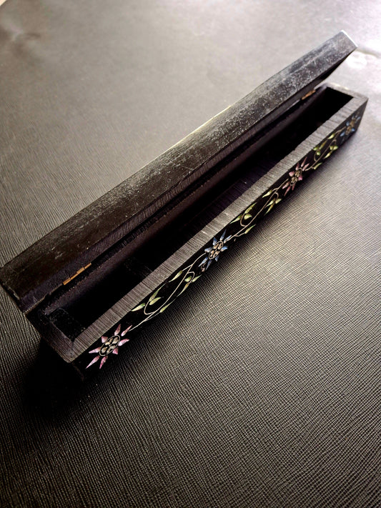 Sold outDragon Inlaid Wood Box Burner 12"L