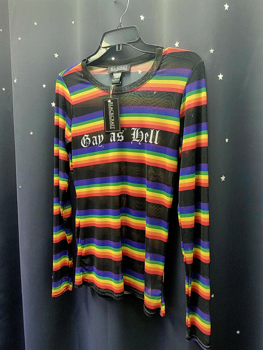 Blackcraft Cult Gay as Hell - Rainbow Long Sleeve Mesh Top