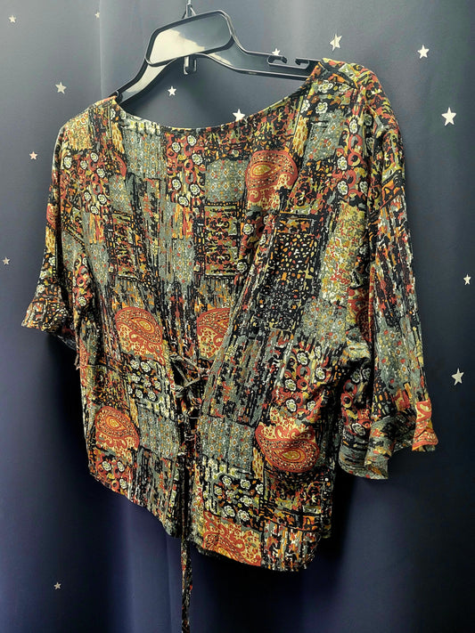Frilled Half Sleeve Criss Cross Back Detail Khaki Patterned