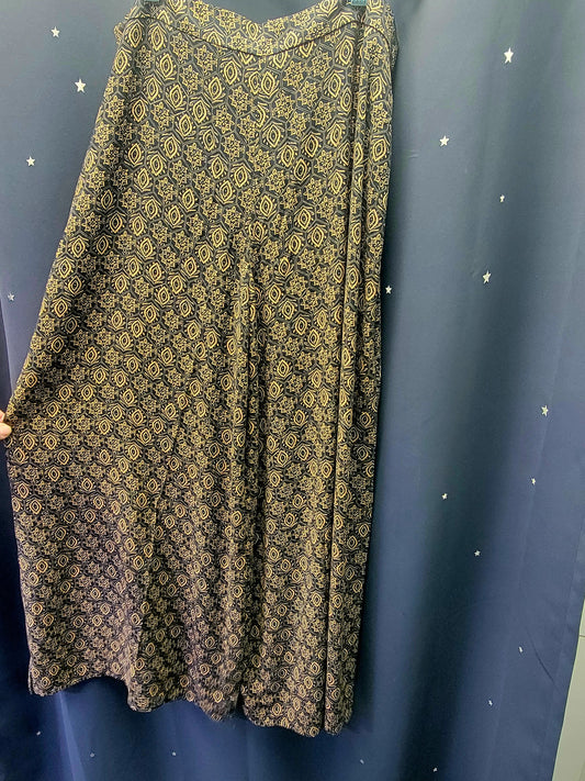 Brown Patterned Tie Band Waist Low Waisted Pants (Large)