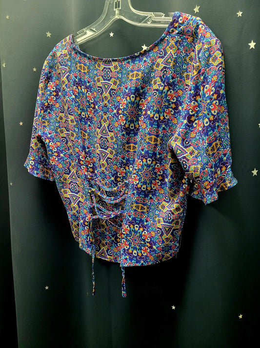 Frilled Half Sleeve Criss Cross Back Detail Blue Boho Top Large