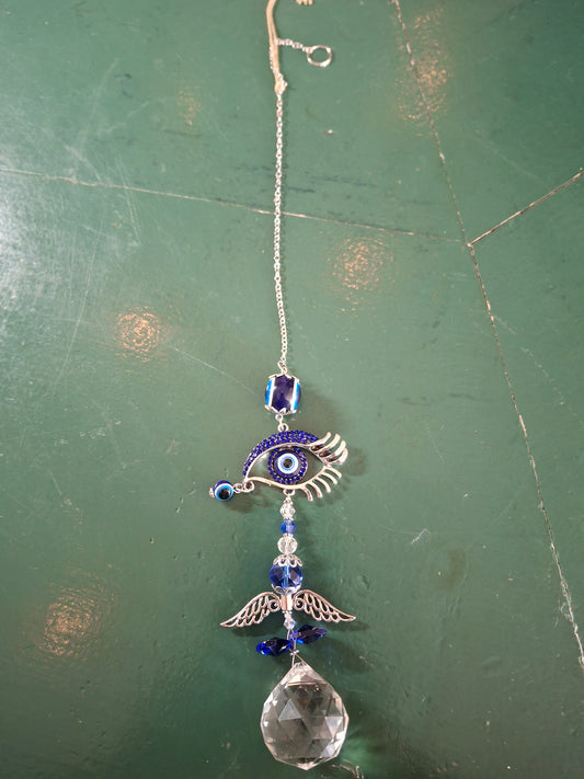 Rainbow Crystal Evil Eye Moon Star Suncatcher 18"L