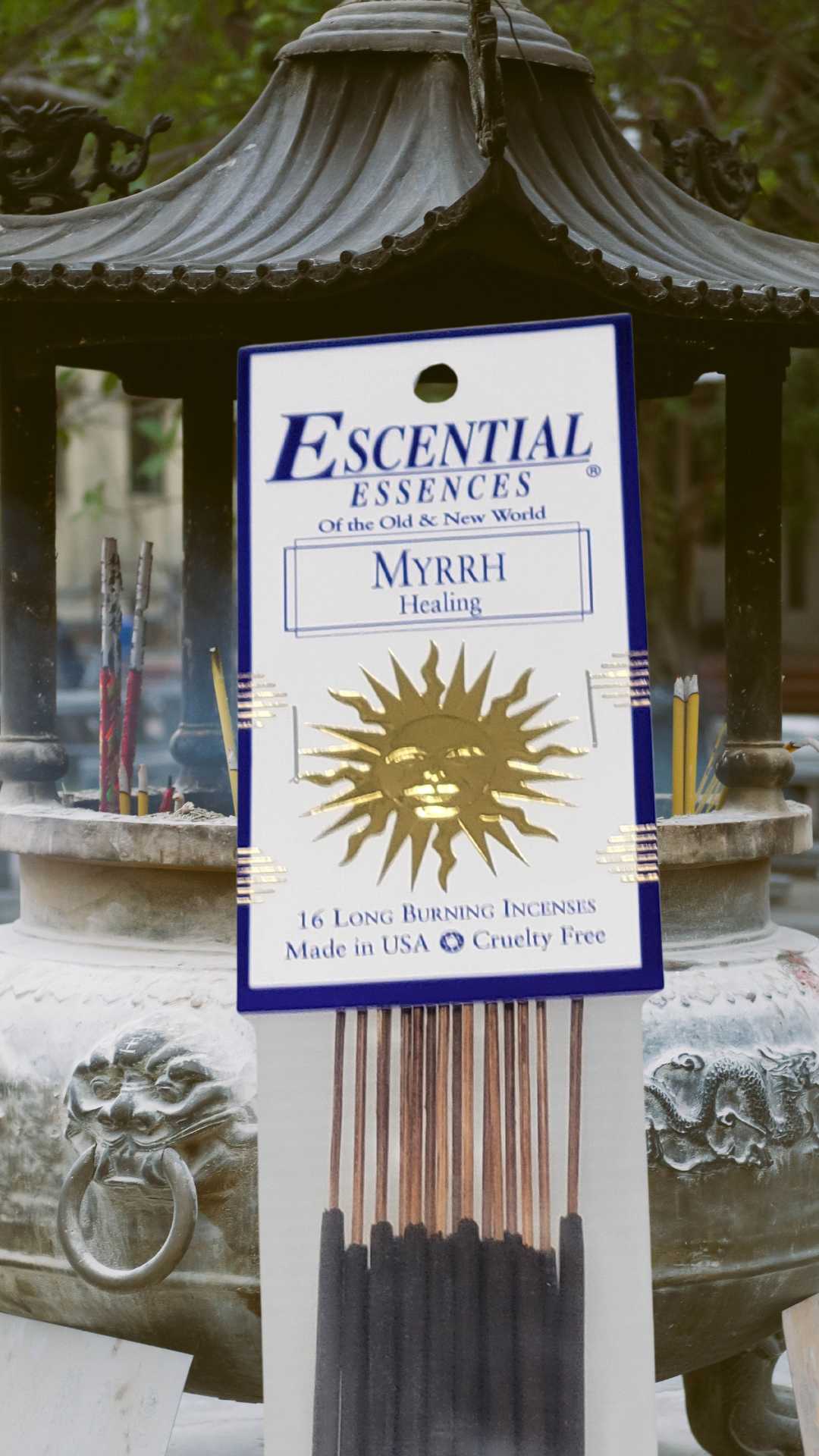"Experience the calming and purifying properties of our Escential Essences Myrrh Incense. Made with pure myrrh extract, this incense is perfect for creating a tranquil ambiance and promoting relaxation. Let the rich and earthy aroma transport you to a state of peace and serenity."