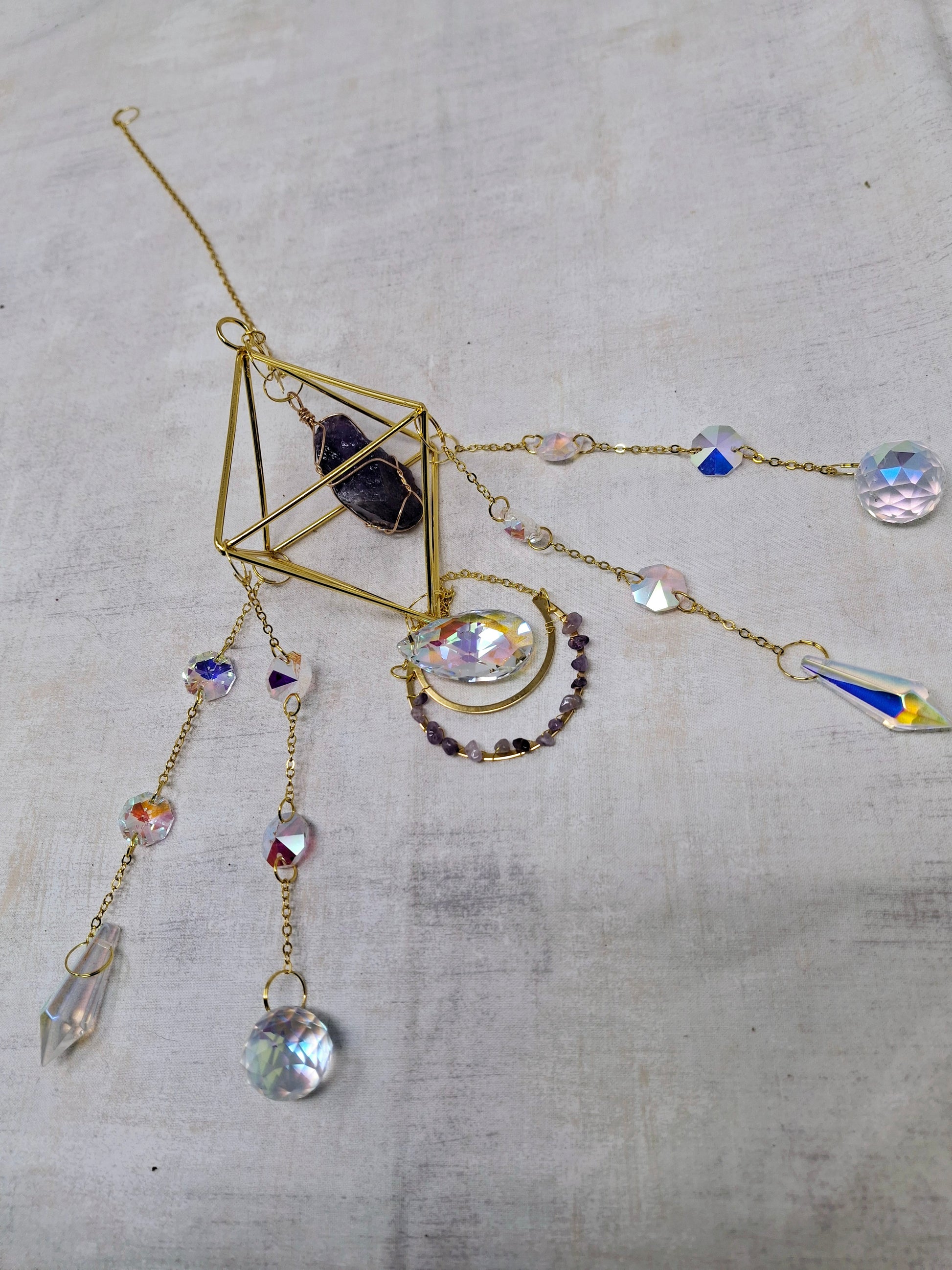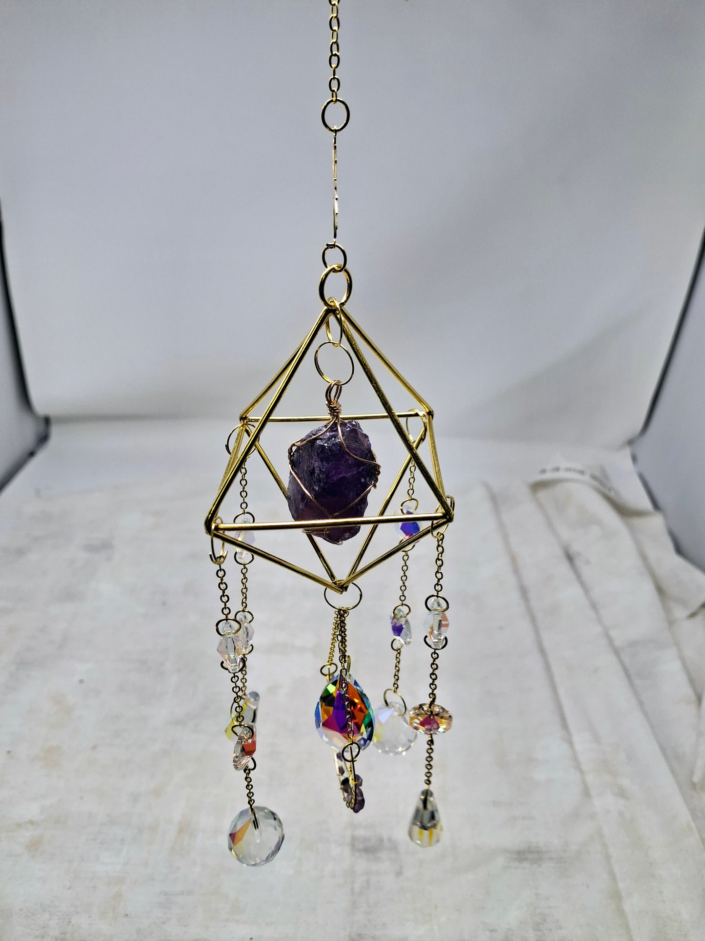 Amethyst Gemstone Rock with Rainbow Crystal Suncatcher 18"L