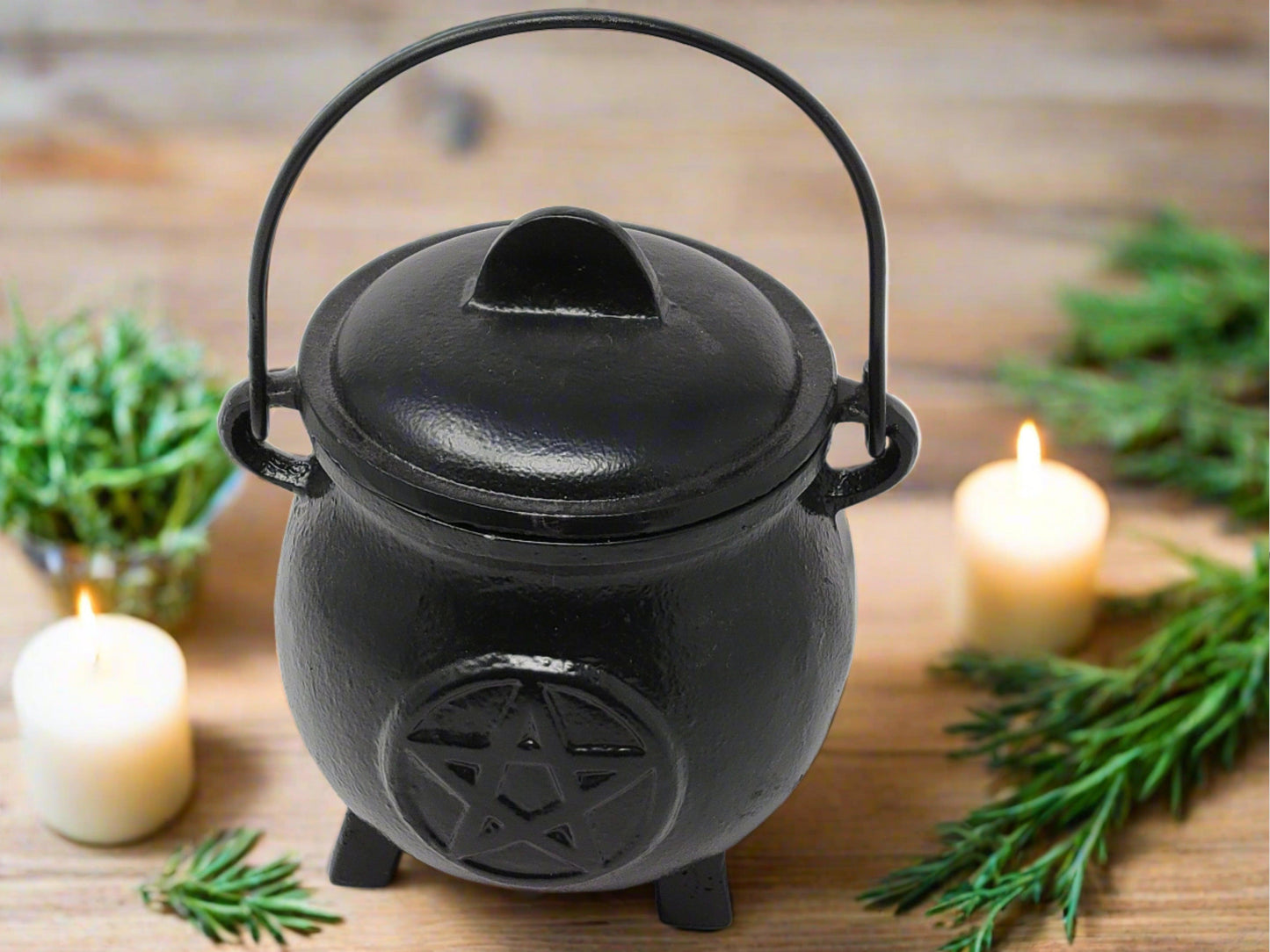 Cast Iron 7.5" Footed Cauldrons w/Lid (Pentacle)
