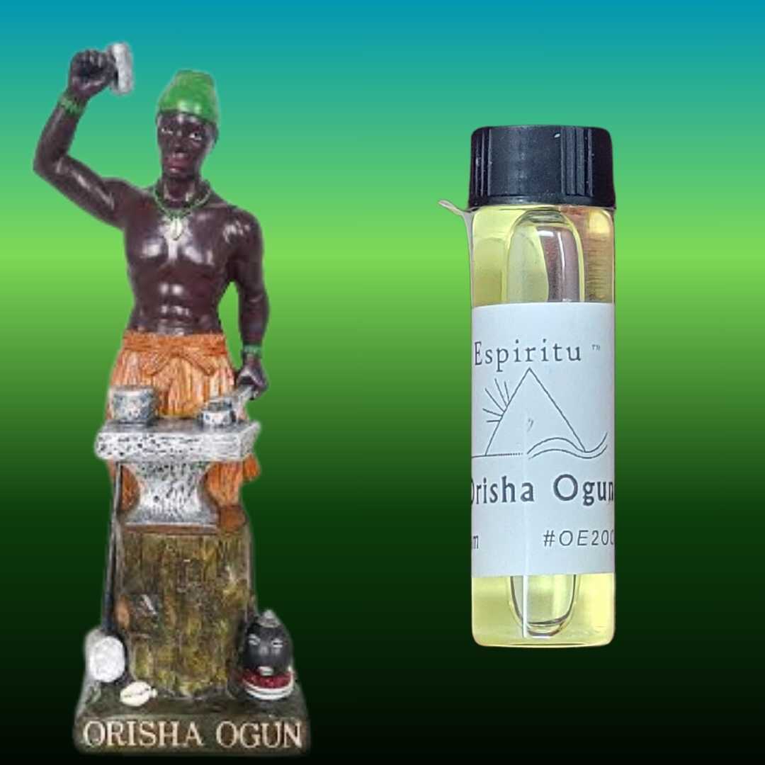 Orisha Ogun Spell Oil is a powerful blend of essential oils and herbs that invokes the energy of the warrior deity Ogun for protection and strength. Use it to enhance your spiritual practice and connect with this ancient and revered deity.