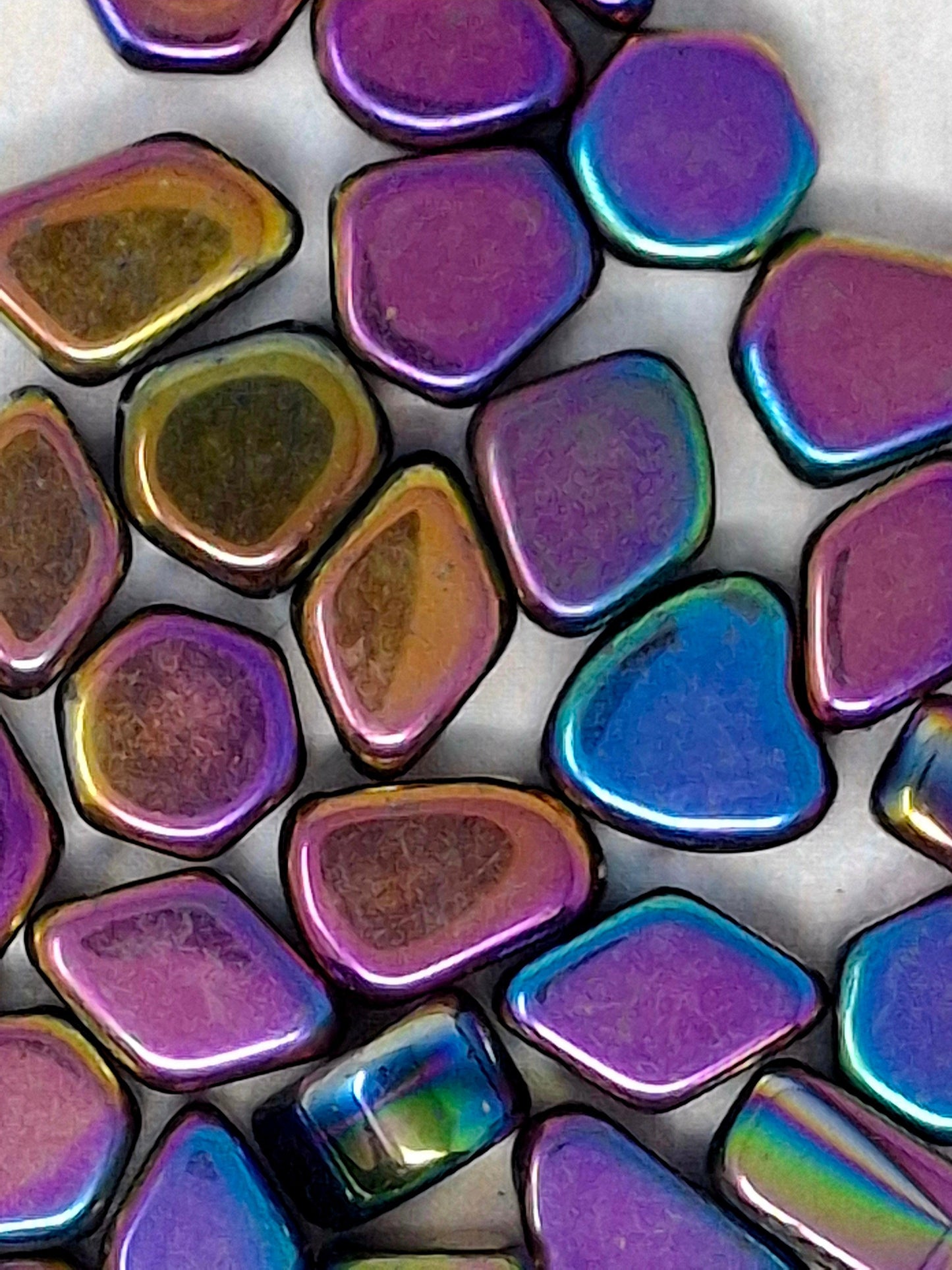 Transform your energy with the powerful properties of our Titanium Coated Hematite. This unique stone activates the root chakra, promoting courage and vitality. Boost your confidence and stamina with this metaphysical treasure.